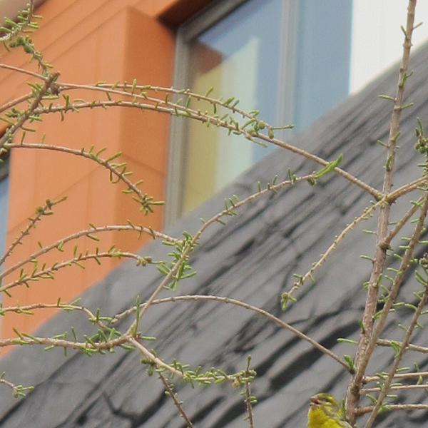 Serin devant l'immeuble Horizons